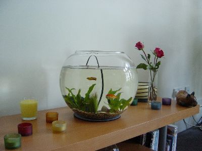 The Betta tank (This tank was converted to a saltwater tank in February 04)