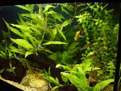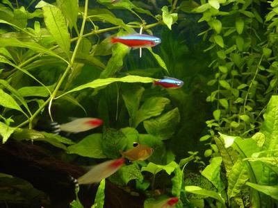Cardinal tetras, Rummy nose tetras and a Rosy tetra
